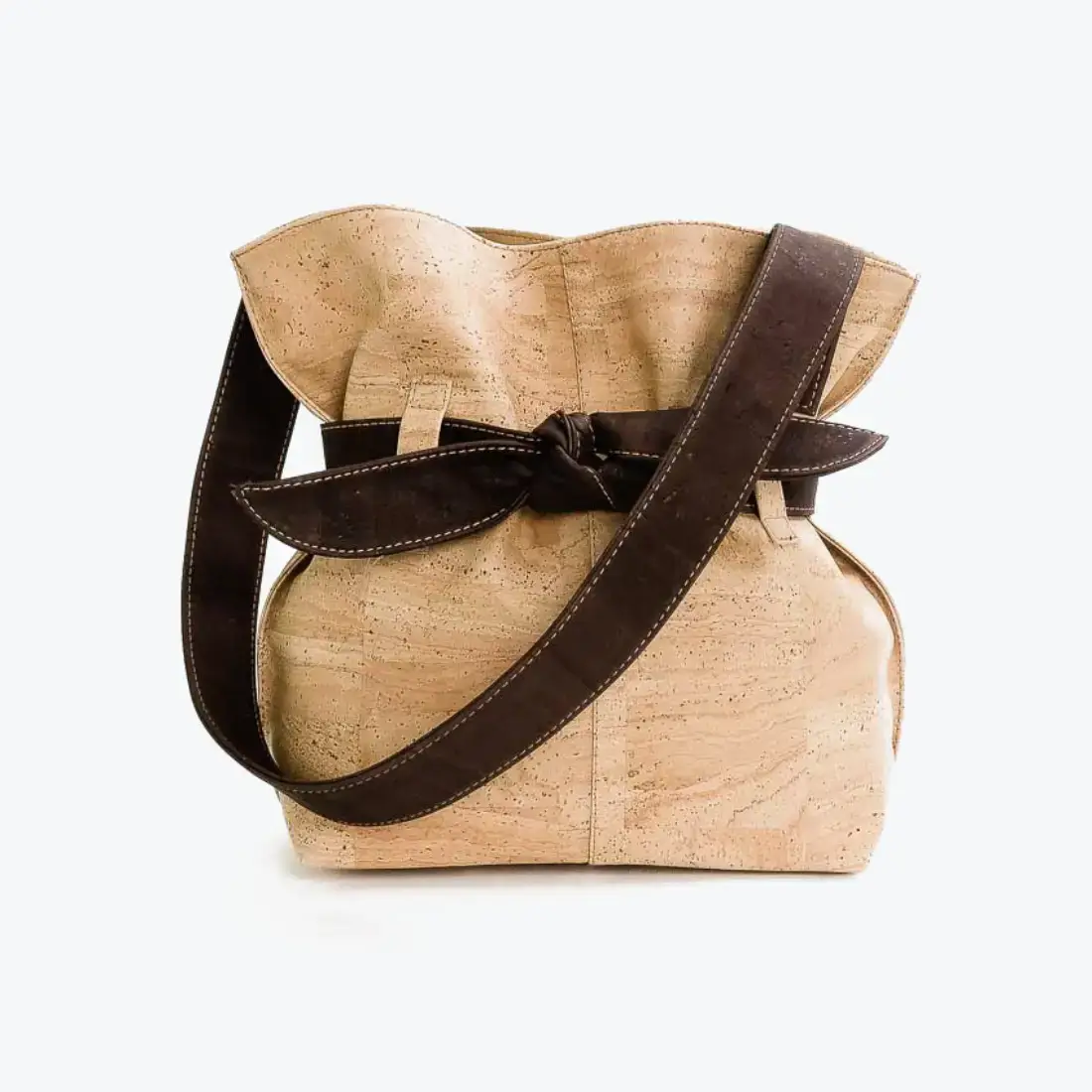 Mala em cortiça com laço.
