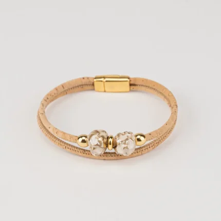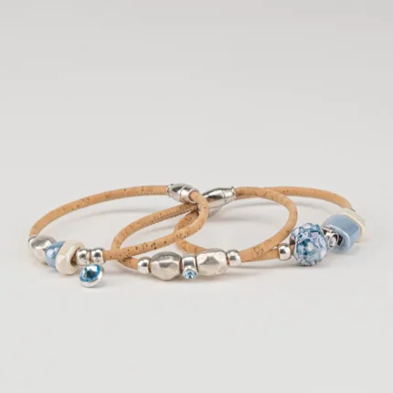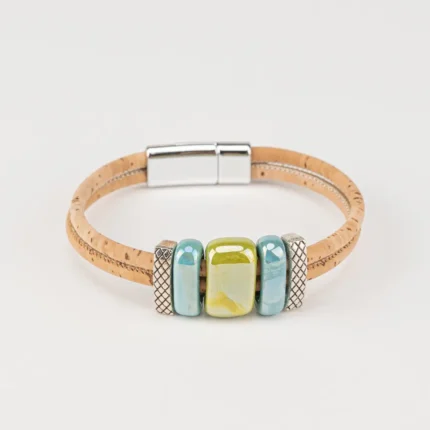 Two-turn rectangular ceramic cork bracelet in blue and orange