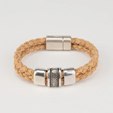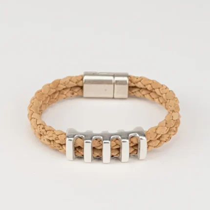 Bracelet with two cork loops and silver pieces