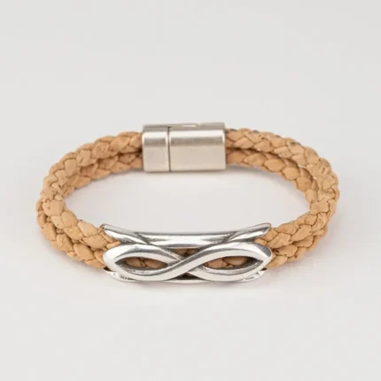 Bracelet with two turns of cork and a metal piece in the shape of an infinity