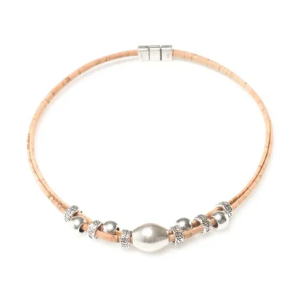 • Cork necklace with silver plate and ceramic Cork necklace with silver plate and ceramic